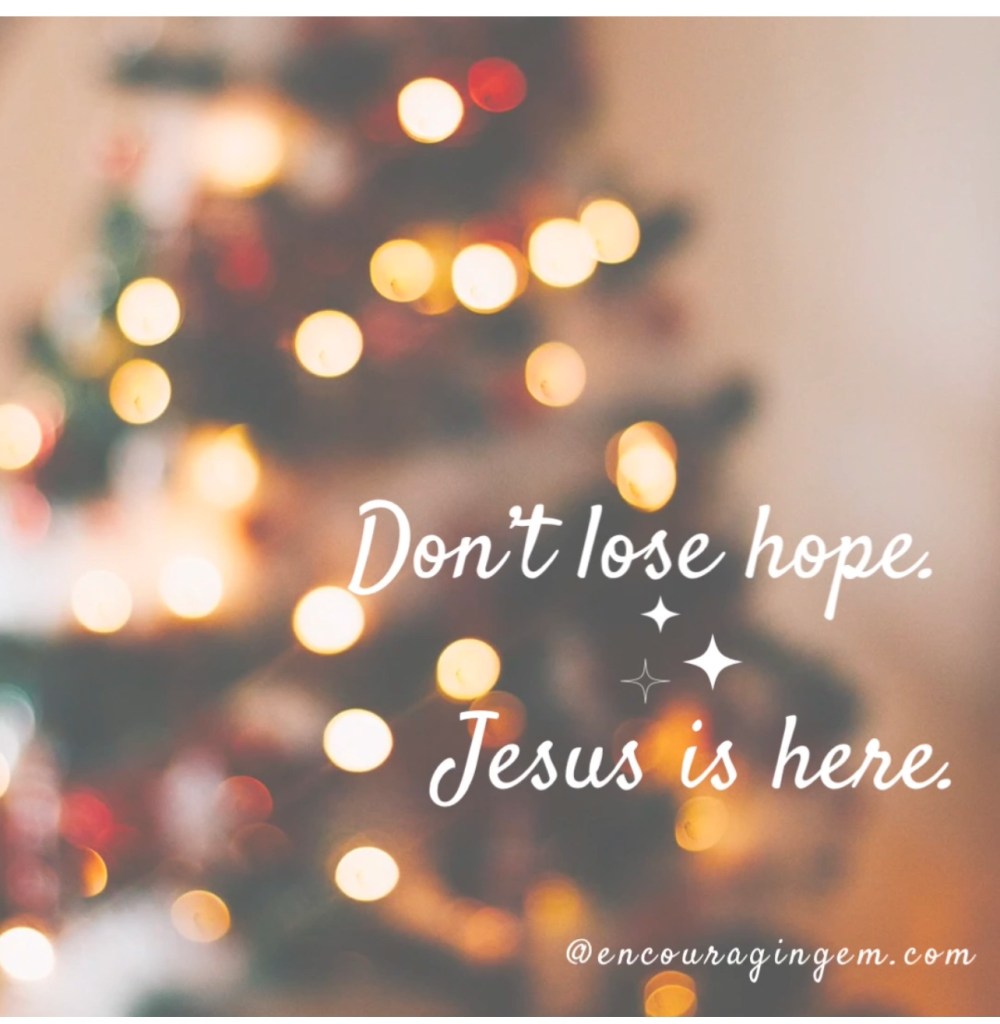 I know this year didn’t turn out like you expected it to. For some, the disappointments are overwhelming. Others, you’re just tired of being tired. You’ve been carrying the weight of hope deferred and your heart is sick. I hear the thoughts of how can I keep trusting? Don’t lose hope, friend. Jesus is here.